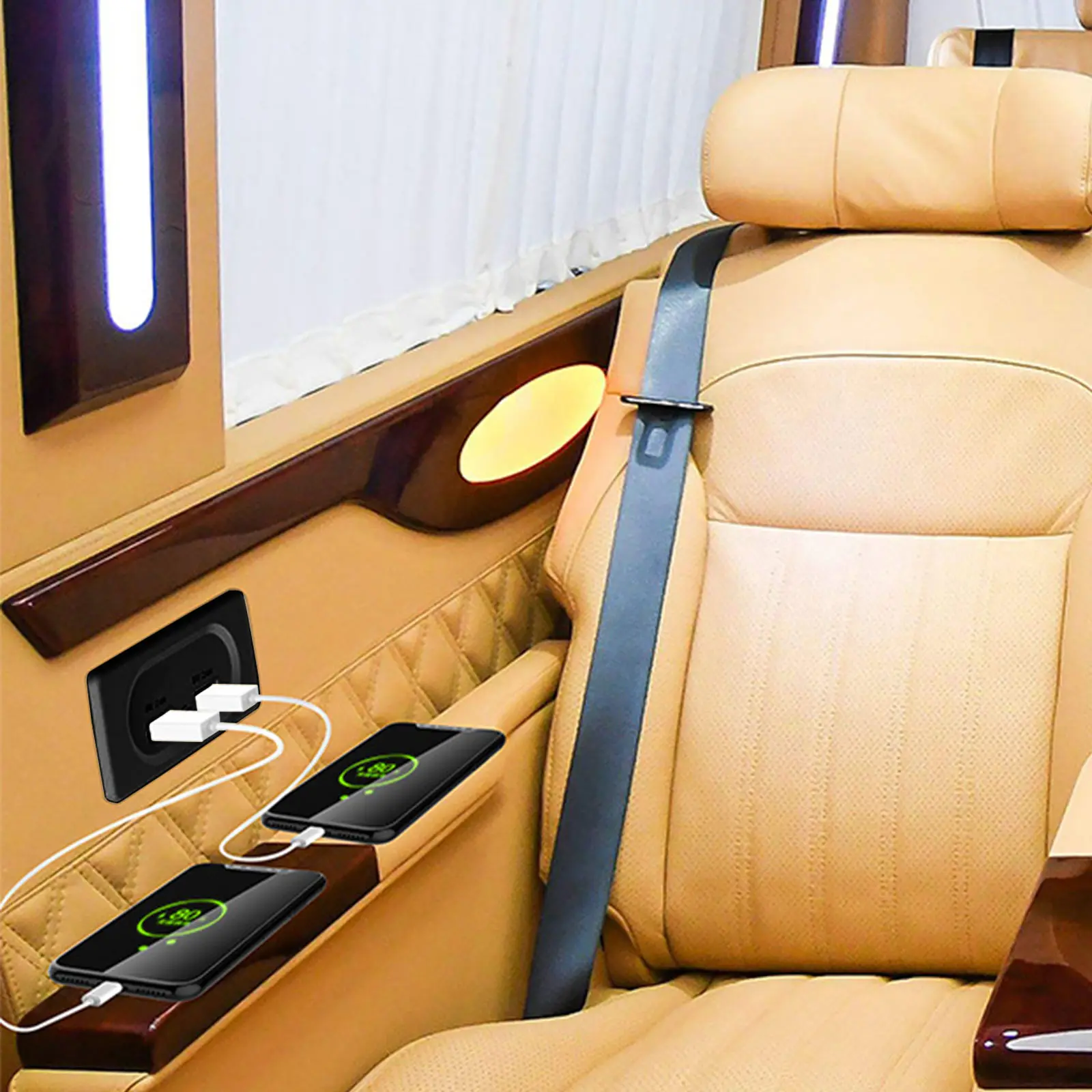The car charger is made of durable materials and is very suitable for installation in cars. It has two output ports.