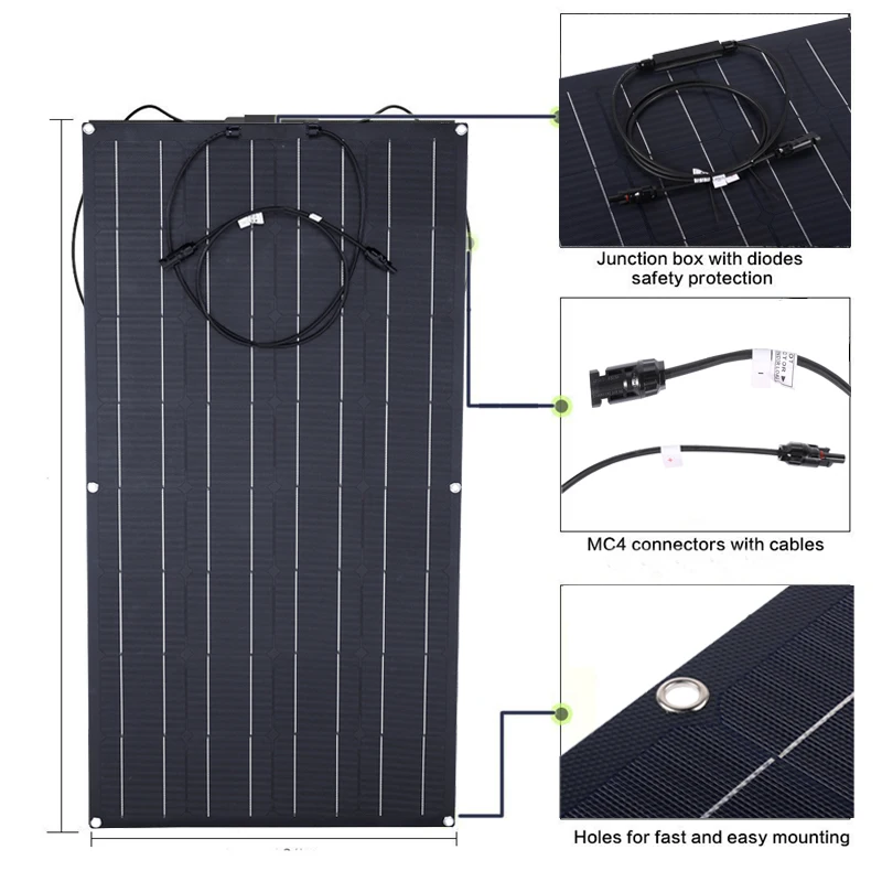 600W 300W Solar Panel Kit 18V Flexible Monocrystalline Solar Cell Power Charger for Outdoor Camping Yacht Motorhome Car RV Boat
