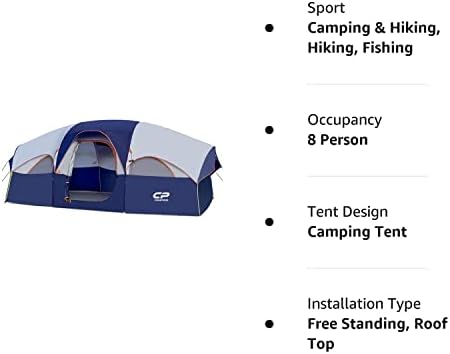PACKAGE INCLUDED: Tent body, Rainfly with attached guylines, Tent Poles, Stakes, 2 Room Divider, Carry Bag, Warranty Card.