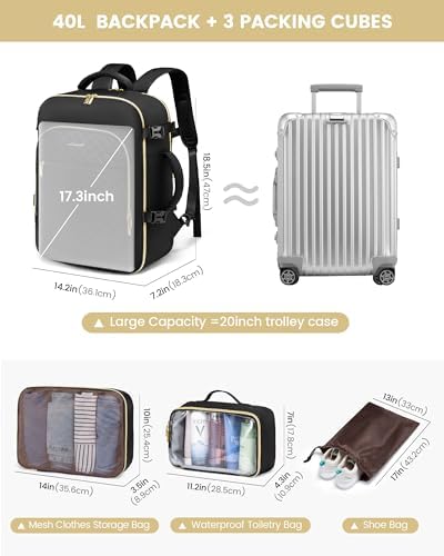 🥰【Extra 3 Packing Cubes】LOVEVOOK Travel backpack with 3 packing cubes: 1 Large cube for sweaters, jackets, pants. 1 Water Resistant Toiletry Bag is ideal for toiletries and you do not worry making your backpack wet, there’s also a shoes bag which keep your belongings neater and more organized.Large-capacity storage meets your travel needs for 3-5 days.